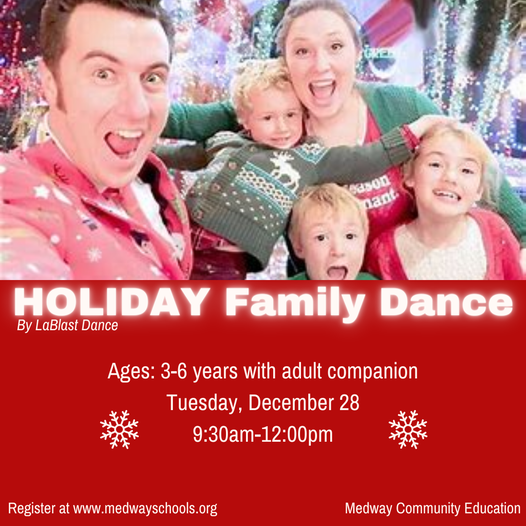This dance class is perfect for children ages 3-6 (adult companion is a must) and is super fun for the entire family. Dances are easy to learn and all children will receive a holiday crown to take home.