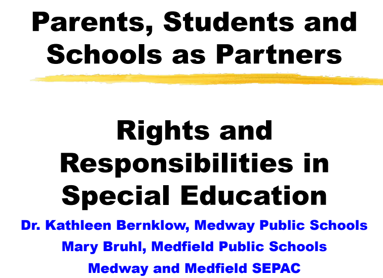 Medway's Special Education Department recently partnered with Medfield Public Schools to present a Parent's Basic Rights Workshop. In case you missed it, the presentation can be viewed here. The recording can be found here: Use passcode: 3?M!O=y?