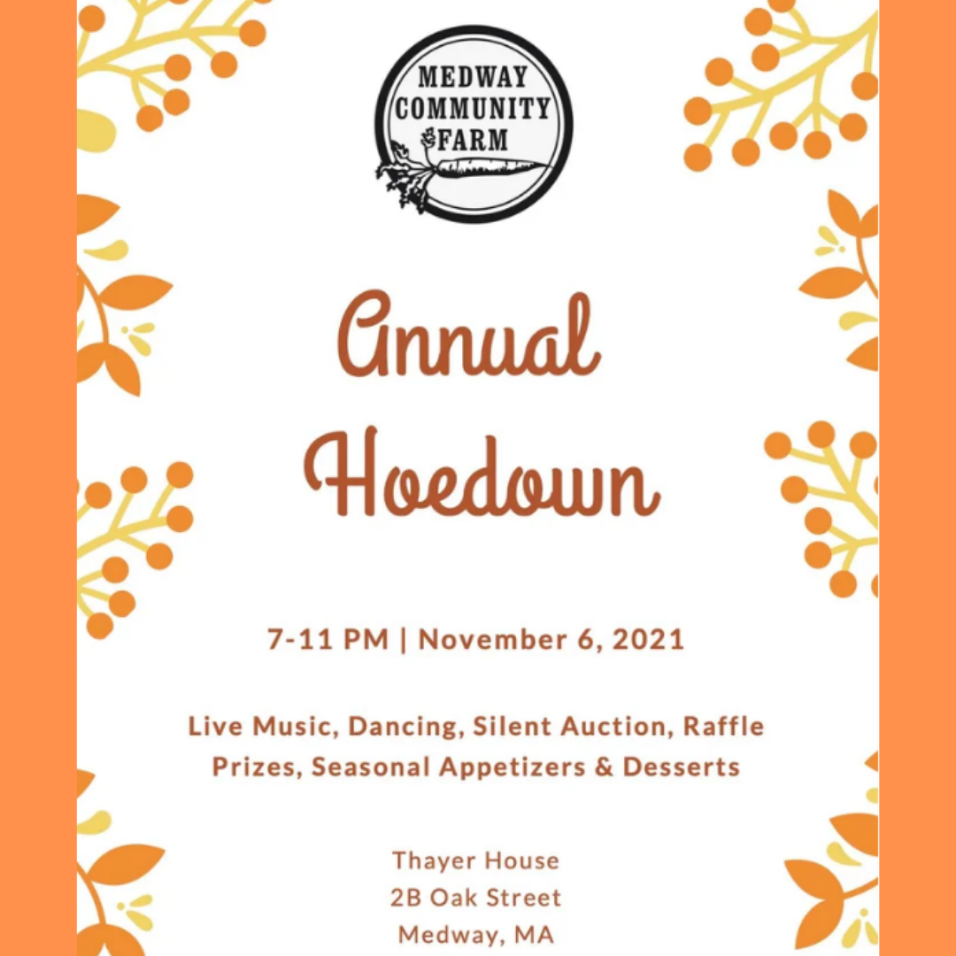Medway Community Farm to host it's annual fundraiser this Saturday, November 6 from 7:00 p.m.-11:00 p.m. at the Thayer Homestead, 2B Oak Street. Enjoy music, food, drinks (cash bar), dancing and raffle prizes! Get your tickets here. If you have a problem buying a ticket, please erase your cache or email tina.wright@medwaycommunityfarm.org.
