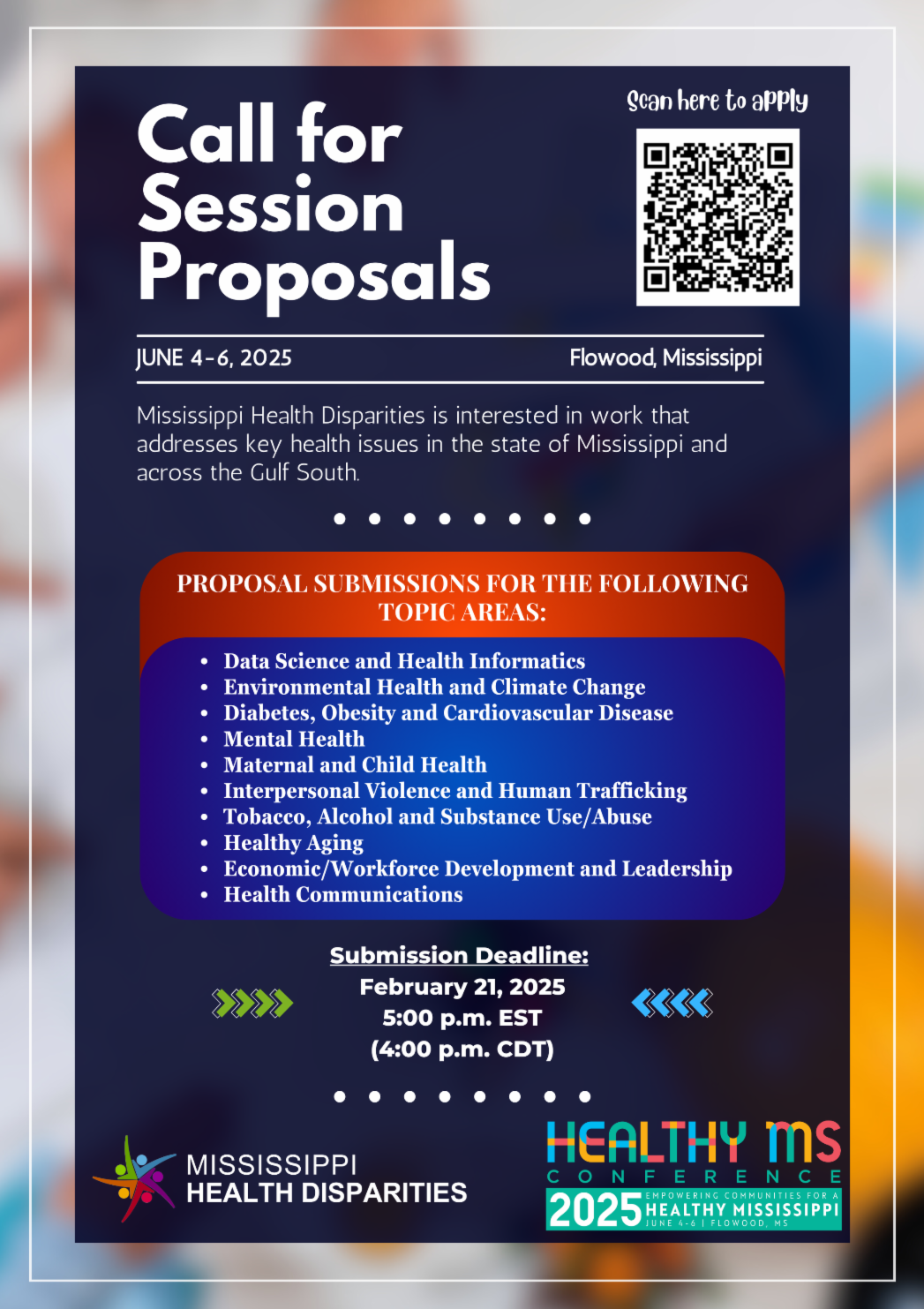 Mark your calendars for June 4-6, 2025, as the Empowering Communities for a Healthy Mississippi and Mississippi Health Disparities are joining forces to bring forth a stellar 2025 conference!