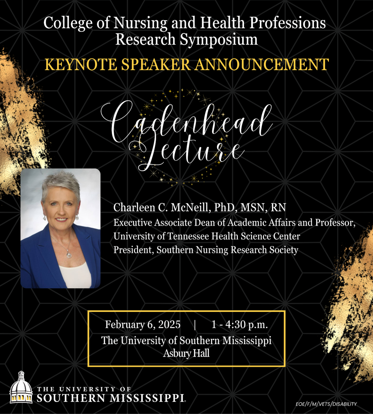 The Southern Miss College of Nursing and Health Professions is thrilled to announce their inaugural Research Symposium, taking place on February 6, 2025, from 1:00 to 4:30 p.m. at Asbury Hall.