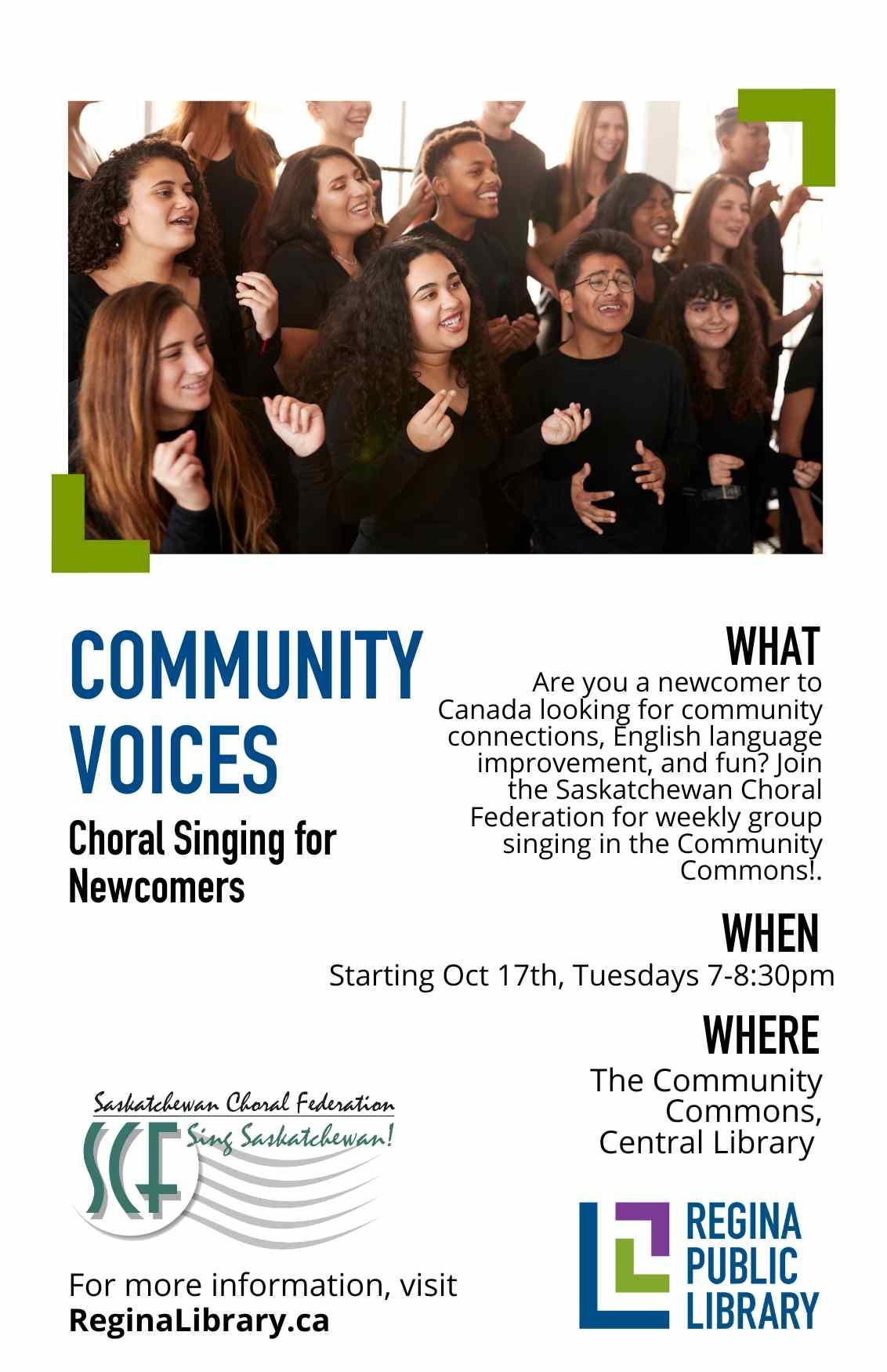 Join the Saskatchewan Choral Federation for weekly group singing in the Community Commons!.