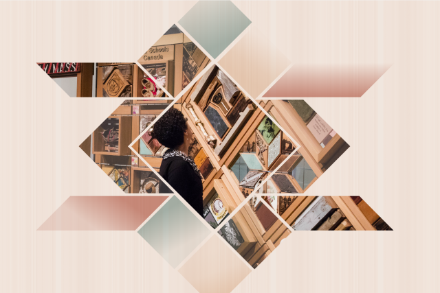 Inspired by a woven blanket, this large-scale work of art contains hundreds of items reclaimed from Residential Schools, churches, government buildings and traditional and cultural structures from communities across Canada.