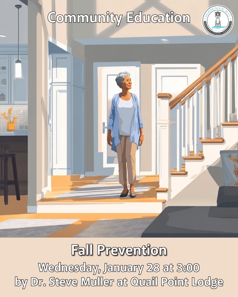 We begin 2026 with two strong Community Education sessions in January. First, a wellness after fifty seminar with Karen Calderon Schweitzer and Dr. William Schweitzer that highlights practical, positive habits for everyday living, including skin care tips you can use. Next, a Fall Prevention program led by Steve Muller, a retired physician, focused on causes, consequences, and simple steps that keep you steady and safe at home. Please join us, bring a friend, and consider signing up to volunteer with a committee.