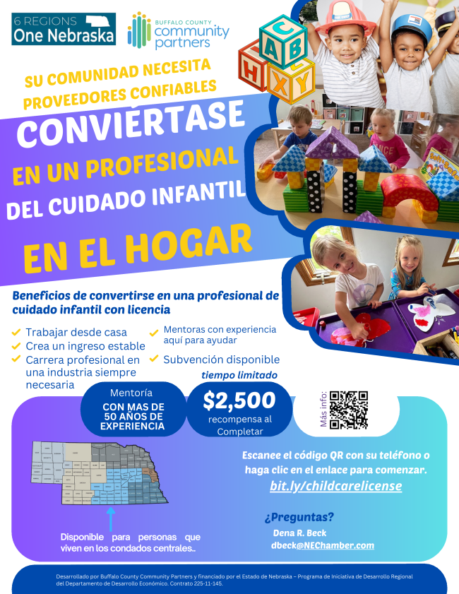 Our region has decided to focus their project on increasing the number of child care professionals in our area. Equitable Early Childcare and Education is a current priority area of Community and Family Partnership, and we are eager to explore what this means for our local counties. Right now, a $2,500 stipend is being offered for those who wish to become an in-home child care professional. Becoming a child care professional gives you the ability to work from home in an industry that is always needed. There are experienced mentors available to help and grant funding available. Child care professionals are the workforce behind the workforce and are vital for our communities and economy to thrive.