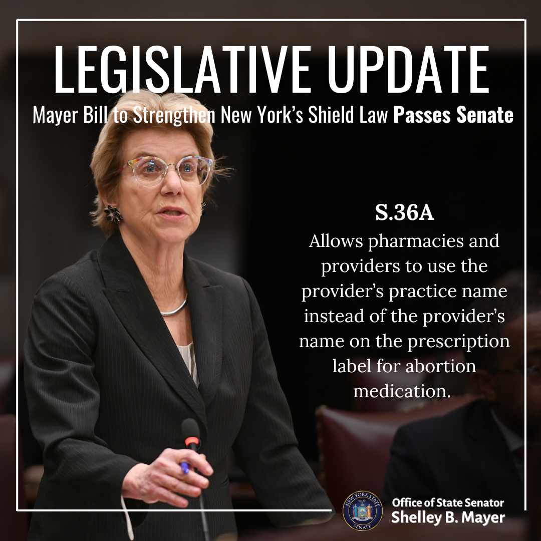 I am proud that my bill to strengthen New York’s telehealth shield law, which protects brave doctors who are taking on significant personal risk to help women in need of access reproductive care, has passed the Senate as part of a Reproductive Freedom, Women’s Health and Privacy package and is likely to pass the Assembly this week. This bill, S.36A, will allow pharmacies and providers filling prescriptions to use the provider’s practice name instead of the provider’s name on the prescription label for abortion medication. As our doctors face threats from hostile states, I am committed to working with my colleagues to fight for our sisters across state lines whose futures, health, and well-being are threatened, as well as the doctors who serve them.