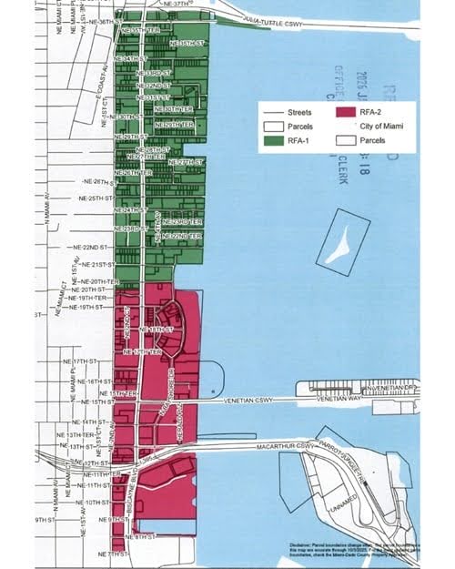 Through this ordinance, the City amends both its Code of Ordinances and the Miami 21 Zoning Code. The ordinance proposes the creation of Resilience Fund Areas (“RFAs”), which would dictate where collected funds must be spent. Funds must generally be used within the same geographic area in which a project seeks increased density, though expenditures may extend into adjacent RFAs when a project’s scope spans multiple areas. Additionally, funds may be used outside a specific RFA if at least fifty-one percent (51%) of the project footprint lies within the originating RFA.