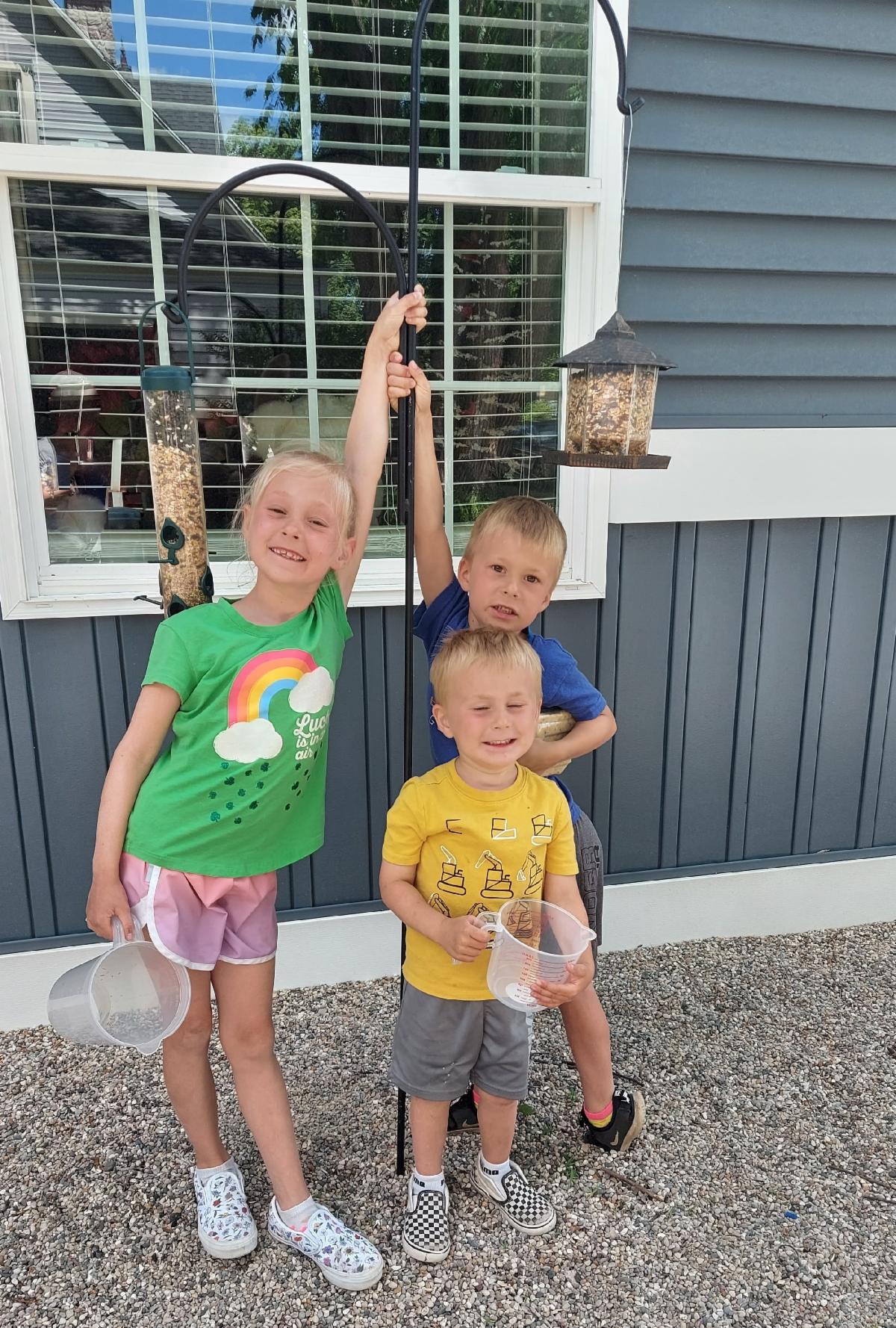 The Compassion Home is excited to have these three young Shepherds and their mother helping us maintain our bird sanctuary! They will be coming weekly to help replenish and stock the bird feeders, bird baths and more! Thank you, Madison, for leading by example and showing your children the benefits and rewards of volunteering at such a young age!