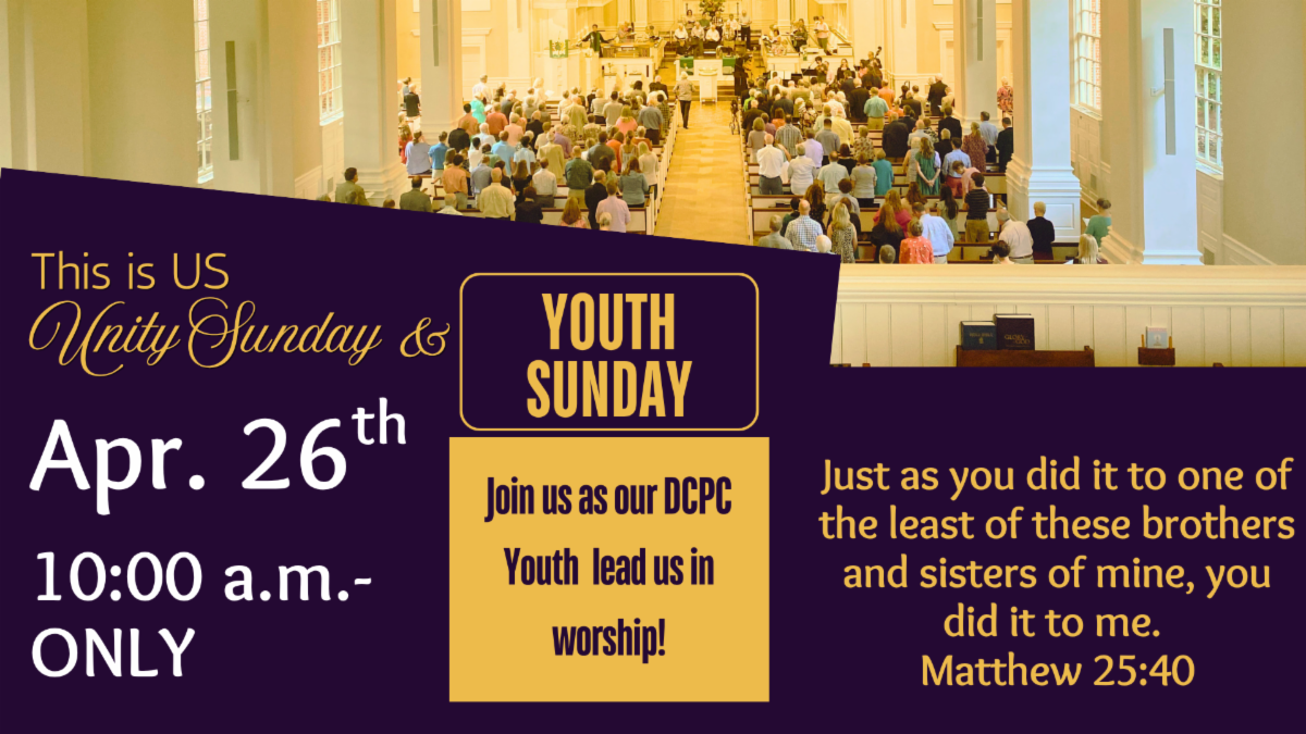 The music will be provided by David Brinson, Sarah Lynch, the Chancel and Geneva Choirs,Tower Ringers, DCPC Brass, the Music Team, and Diana Loomer.