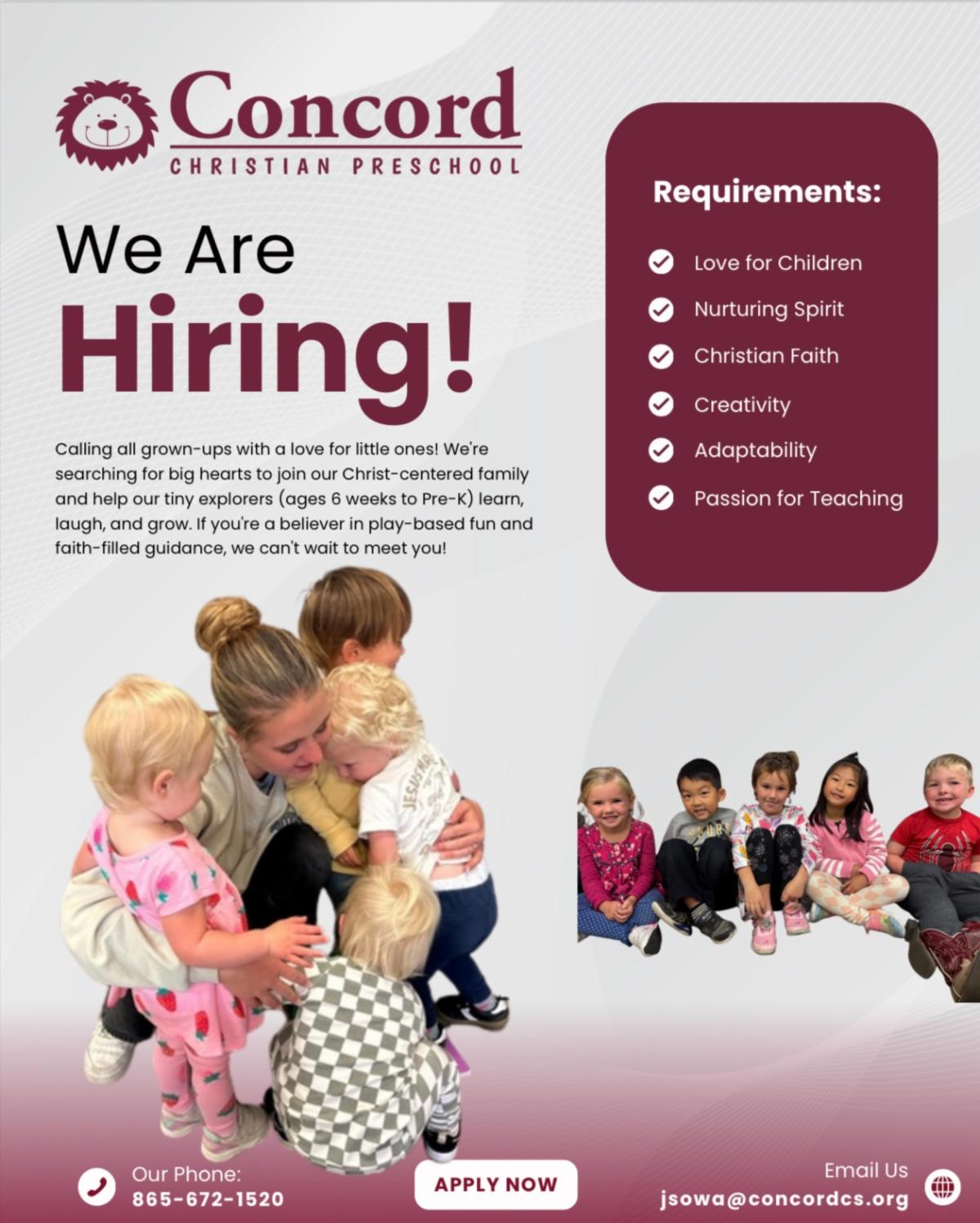 Contact Jessica Sowa at Jsowa@concordcs.org for any additional questions, and join us in shaping hearts and minds for the future!