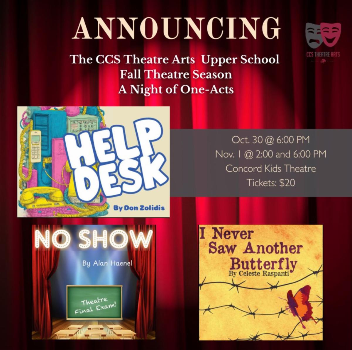 We’re thrilled to announce our Upper School Fall Theatre Season: A Night of One-Acts! 🎭