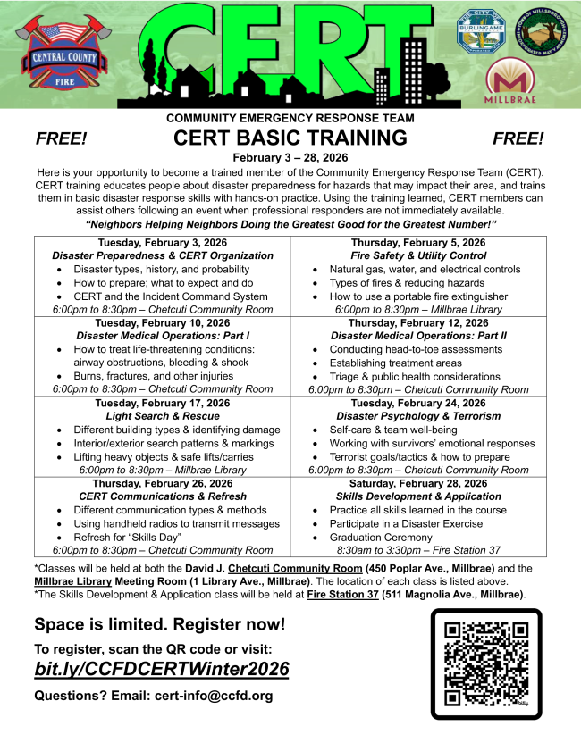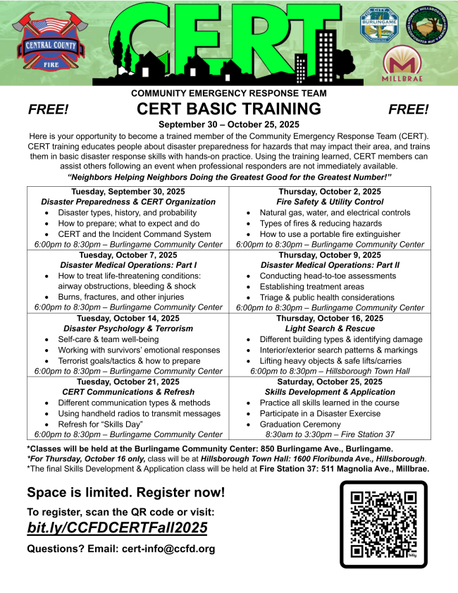 Check out our Fall and Winter CERT schedules below, and register through our Eventbrite page: