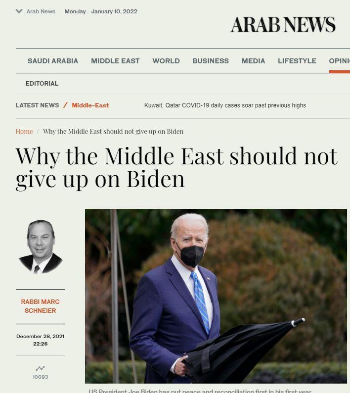 Arab News is the leading English-language newspaper published in Saudi Arabia and the Persian Gulf. Schneier will write twice a week for the newspaper on a variety of topics: interfaith dialogue, Israel's ties with the Gulf, cultural issues related to the Jewish and Muslim world and more.