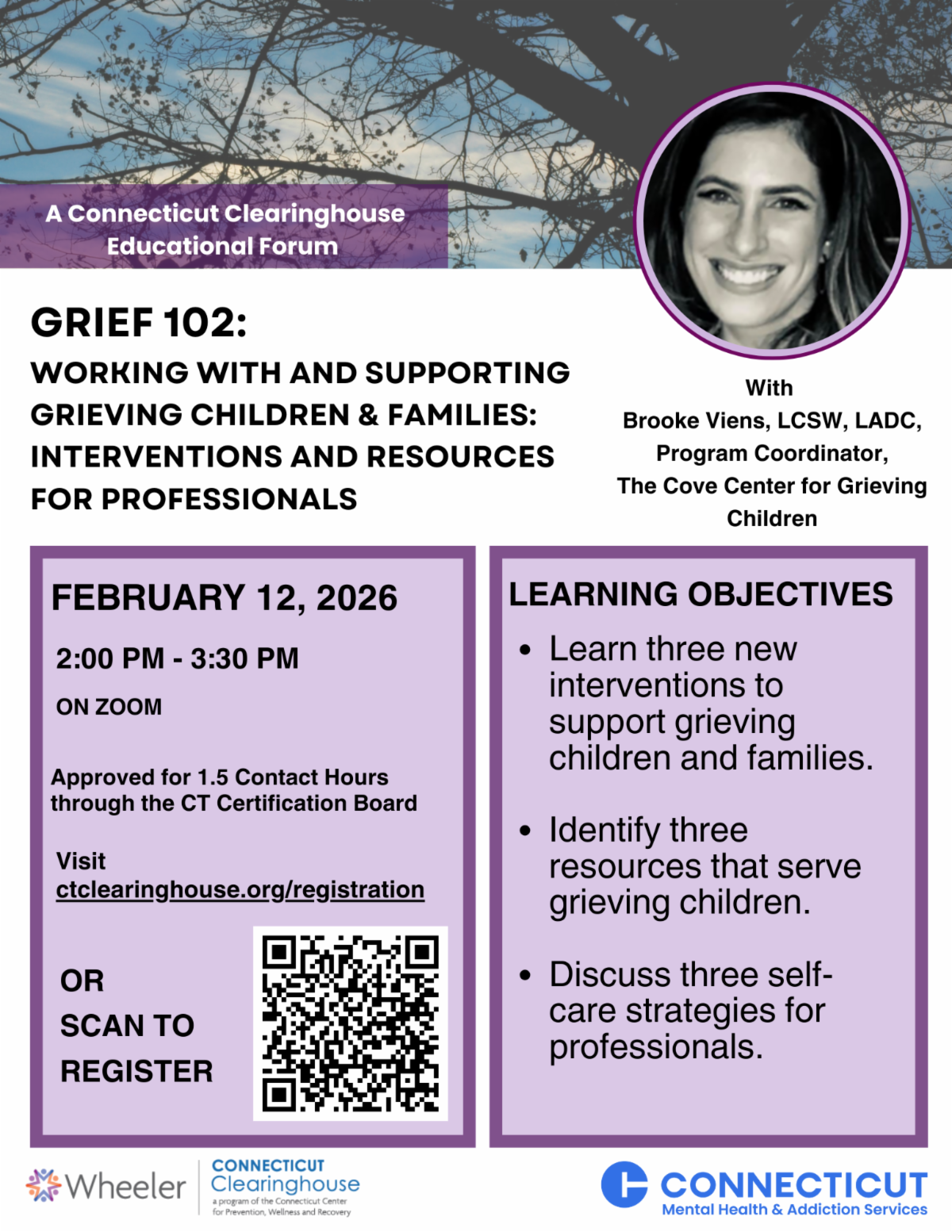 Participants will learn about: interventions to support grieving children and families, resources, and self-care strategies.
