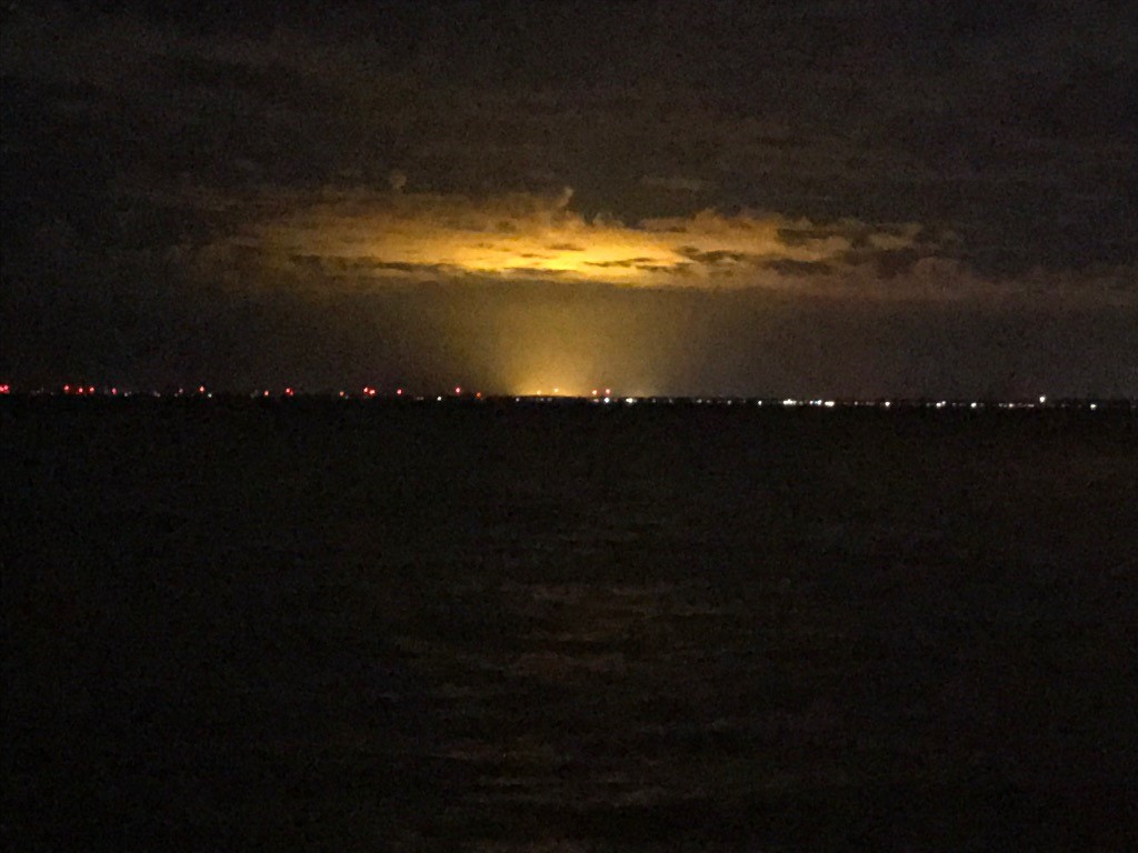 Hank Ackerman (Email) - Here's a shot from Grosse Pointe (Mich.) across Lake St. Clair showing glow on clouds from the regional city Chatham-Kent in Ontario along with the red tower lights of some 50 wind turbines along the lake's eastern shore taken several weeks ago. About 6% of Canada's energy came from wind by 2019 with plans for wind to generate some 20% by 2025.