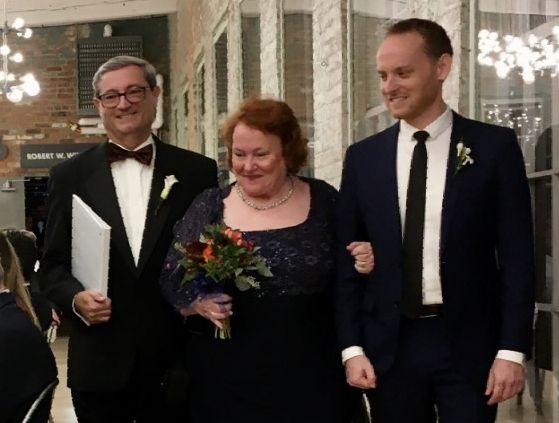 Above photo shows Becky and Dan Day walking with their son Liam at his wedding in North Adams, Massachusetts last October; photo at right from their wedding album.
