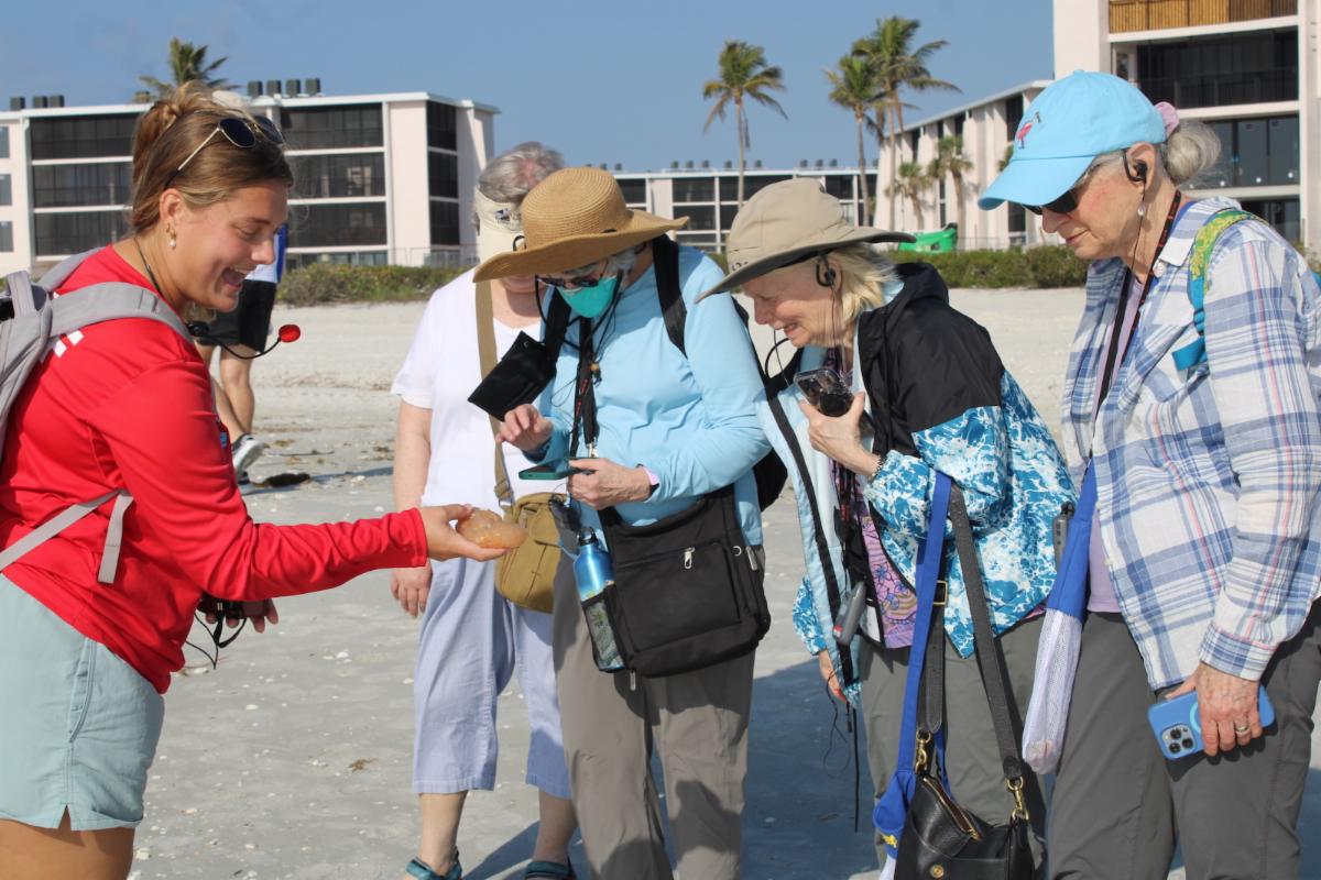 Sanibel Sea School marine science educators hosted beach walks with adults visiting Sanibel on a 6-day excursion hosted through Road Scholar. This group learned about the shells, shorebirds, and other coastal wildlife while experiencing Sanibel’s unique beaches.