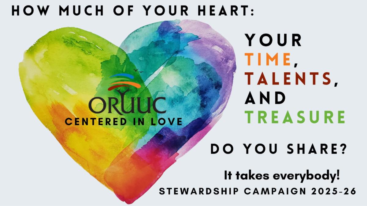 With the generosity of our community, ORUUC raised about $15,000! These funds will help our congregation to continue showing up, siding with love, and cultivating justice and joy both within ORUUC and in our wider community.
