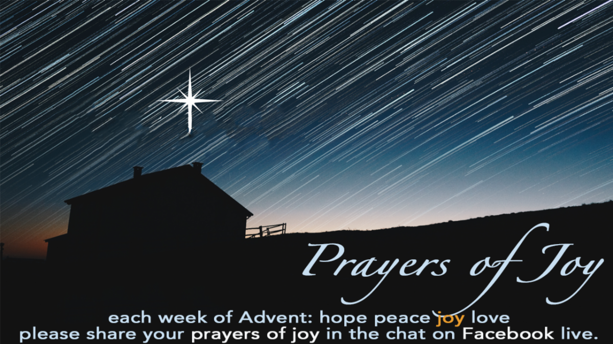Be sure to come in person or to tune in! And, send in your prayers for peace ahead of time to Chase and we will add them to the Advent Candle of JOY this Sunday.