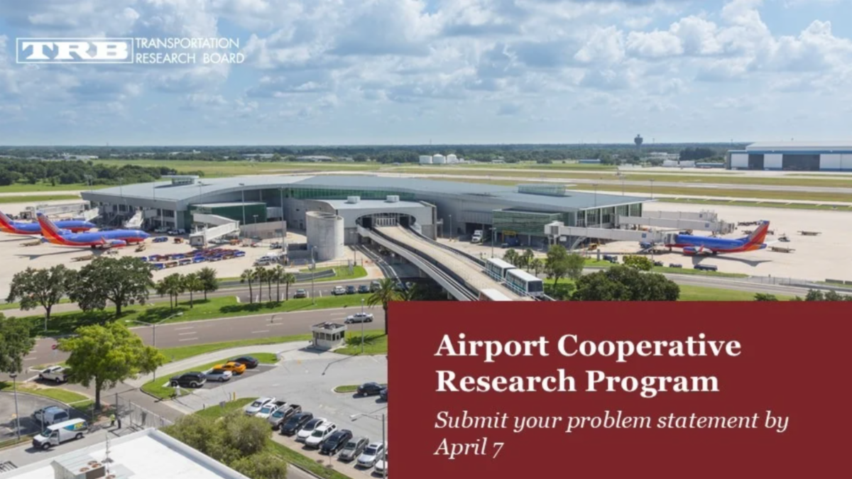 Take part in the only airport industry-based research program in which anyone can help define research needs! Tell us why the research is needed and how it will address a current problem that more than one airport is experiencing with the ideal outcome of the research. Submit your idea by April 7, 2025.