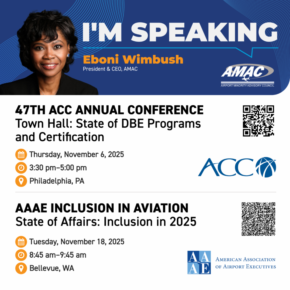November 12, 2025: Will host a member-only "Personal Narratives for DBE/ACDBE Certifications — Airport Primes, Developers & Consultants Webinar" designed for Airport Primes, Developers, Consultants, and firms providing certification or supportive services to airports, and DBE/ACDBE firms.
