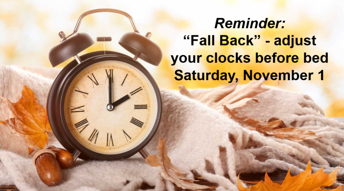 - *Daylight Saving Time ends THIS Sunday, November 2, 2:00 am