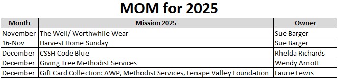 The Preschool at DUMC is collecting gifts for A Christ's Home from Monday, November 10 - Friday, December 5. Each classroom will have a display for students/parents to choose tags and then bring gifts to place in a giant “gift” in the Lobby on weekdays. Please CLICK HERE to read more or contact the Preschool office with any questions at (215) 345-9775.