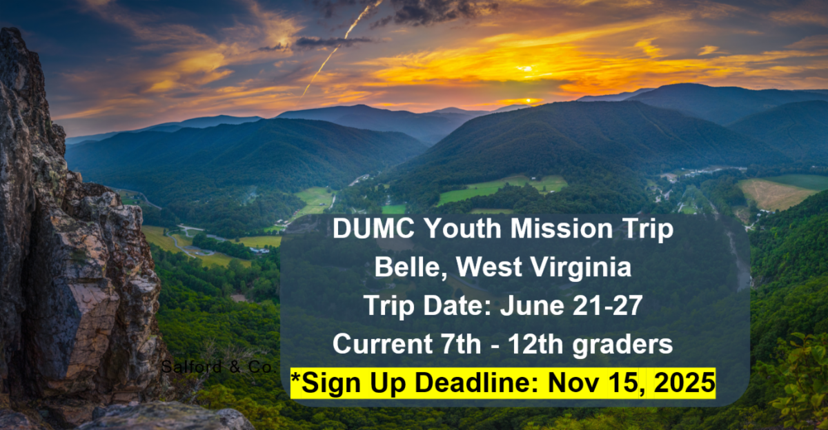 2026 Youth Mission Trip registration due, Saturday, November 15