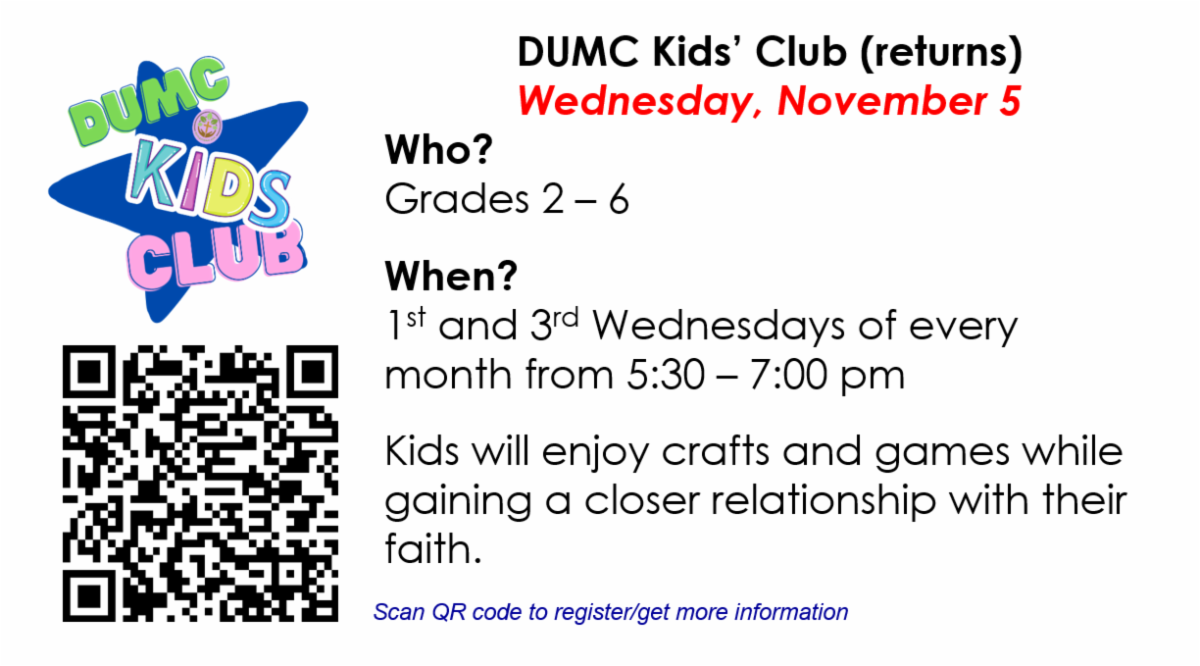 -DUMC Community Dinner, Wednesday, November 26, 6:00 pm