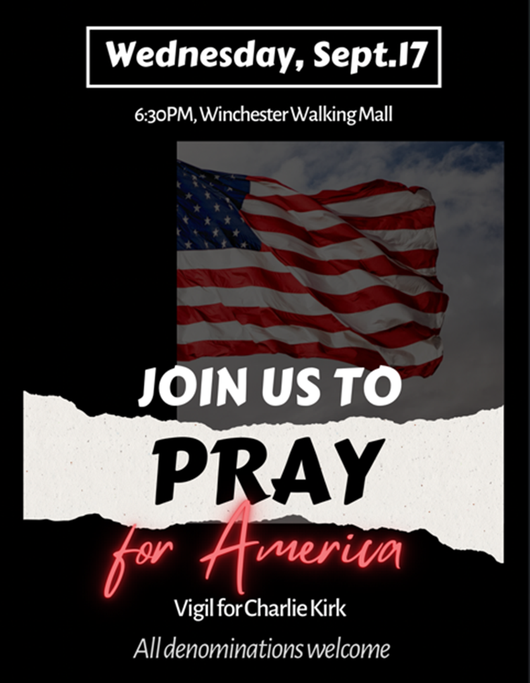 September was a month of mourning as well as excitement. The tragic assassination of Charlie Kirk on September 10th left a hole in millions of hearts across the world. The vigil on Sept. 17th was an amazing evening filled with worship, prayers, and a way for a small piece of our hearts to begin healing for the well over 200 people that were able to attend. A big shout out to Willie Deutsch, Vice-Chair FCRC and Emily Windle, Winchester City Council Ward 1, for orchestrating the evening.