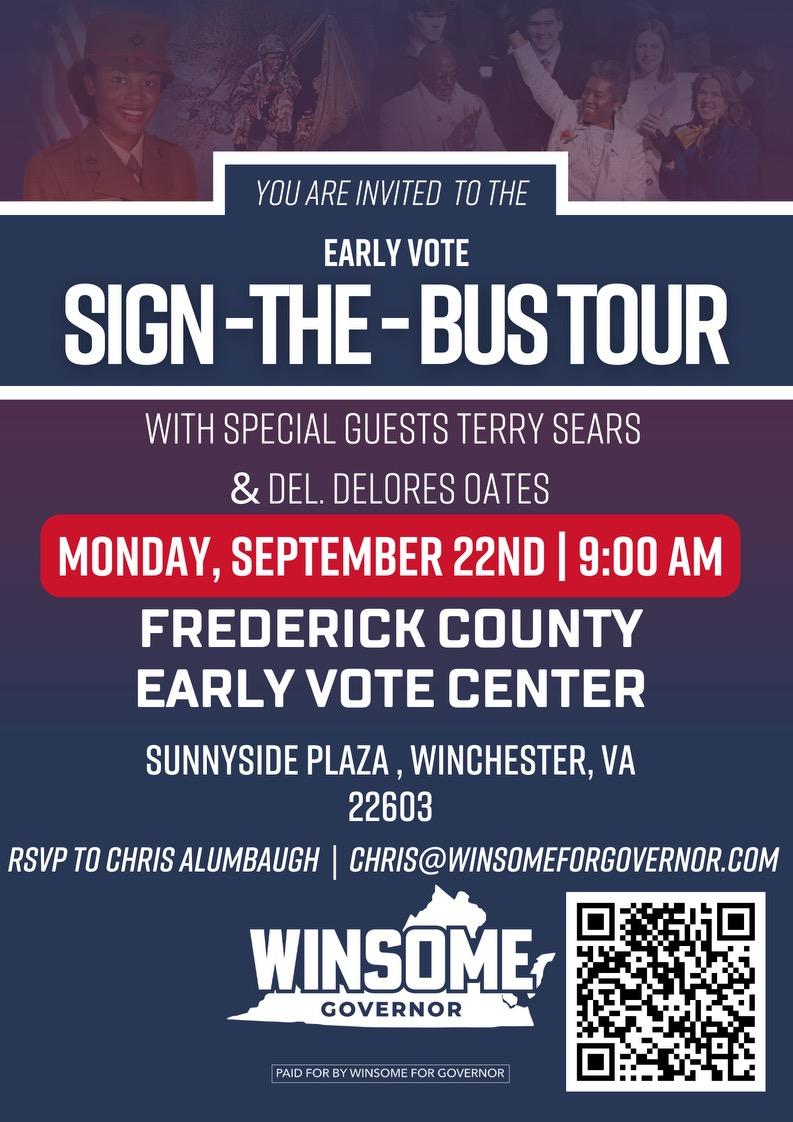 The Sear Campaign's Sign-The-Bus Tour made a stop at the Election Office on September 22nd. It was a great turn out that provided the opportunity for many to sign the bus in support of Winsome Sears for Governor. We need to let the excitement of winning fuel us to victory rather than the left's "rage fueled" actions.