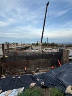 Crews have been forming and pouring the retaining wall along the EB SR-91 on-ramp. Crews are also making progress preparing the area for the foundation of the new bridge.