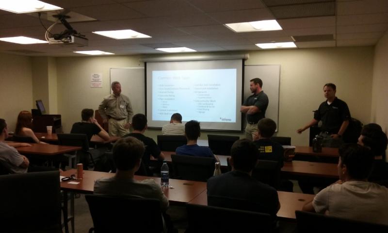 there was an invasion in the Construction Management classrooms. It was not a hostile invasion, but a take over by Allan Myers employees. The curriculum take over is a collaboration between the Program and Allan Myers in an effort to present to our students field applications of the material they are learning in the classroom. The Allan Myers employees worked directly with the instructor for each course to develop a classroom session that would engage the students by presenting information from a field perspective.