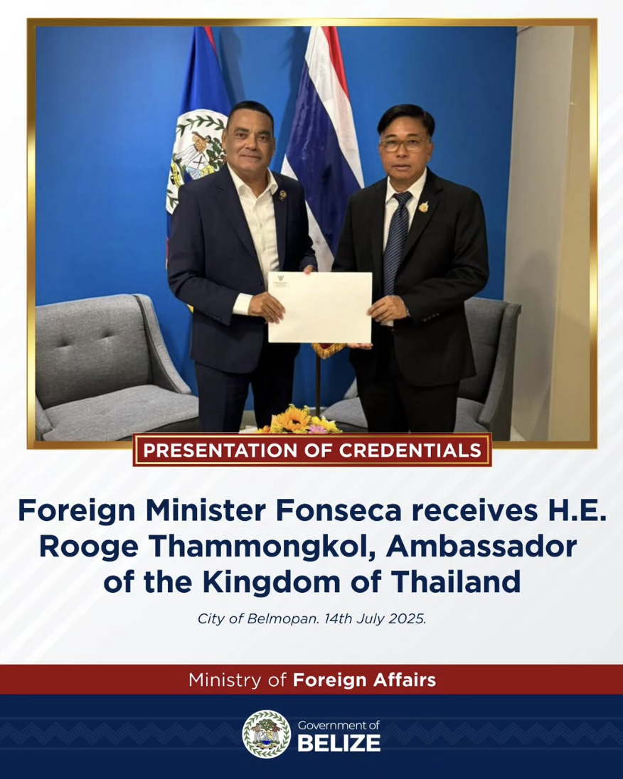 Ambassador of Thailand Presents Letters of Credence to Belize's Foreign Minister