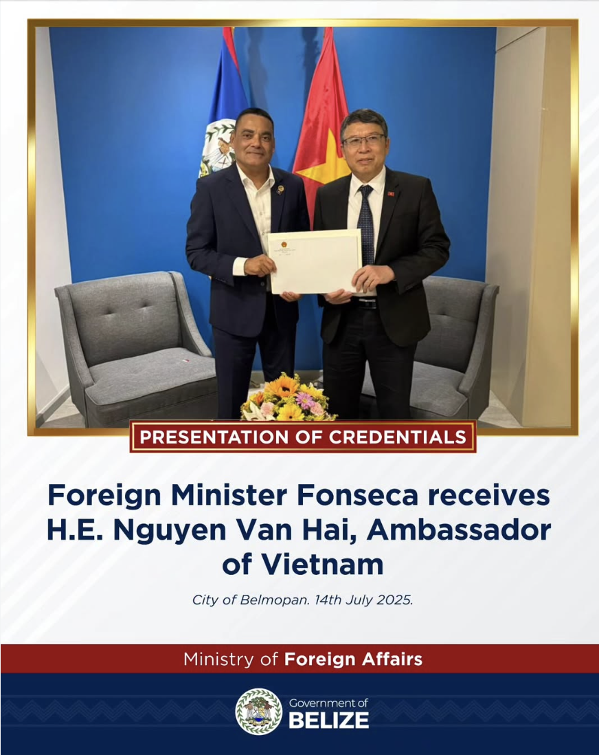 Belize's Foreign Minister, Hon. Francis Fonseca, received the Letters of Credence from H.E. Nguyen Van Hai, Vietnam's new Ambassador, highlighting strong ties and opportunities for cooperation in investment, tourism, and education. Read More