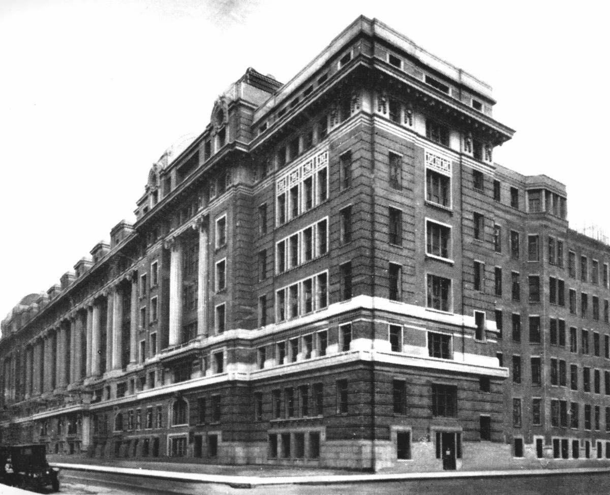 Street. The Hospital was then a complex of 2,700 beds. The main hospital was eight-stories high and the building covered an entire block, bounded by Harrison, Polk, Wood and Wolcott Streets.