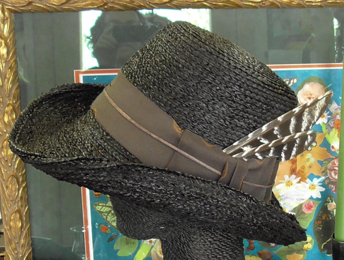 Black straw hat. Not as high of a crown,