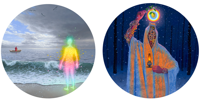 “The Lost Spectral Witnesses IX” (oil on panel, 12” (d) round) and
