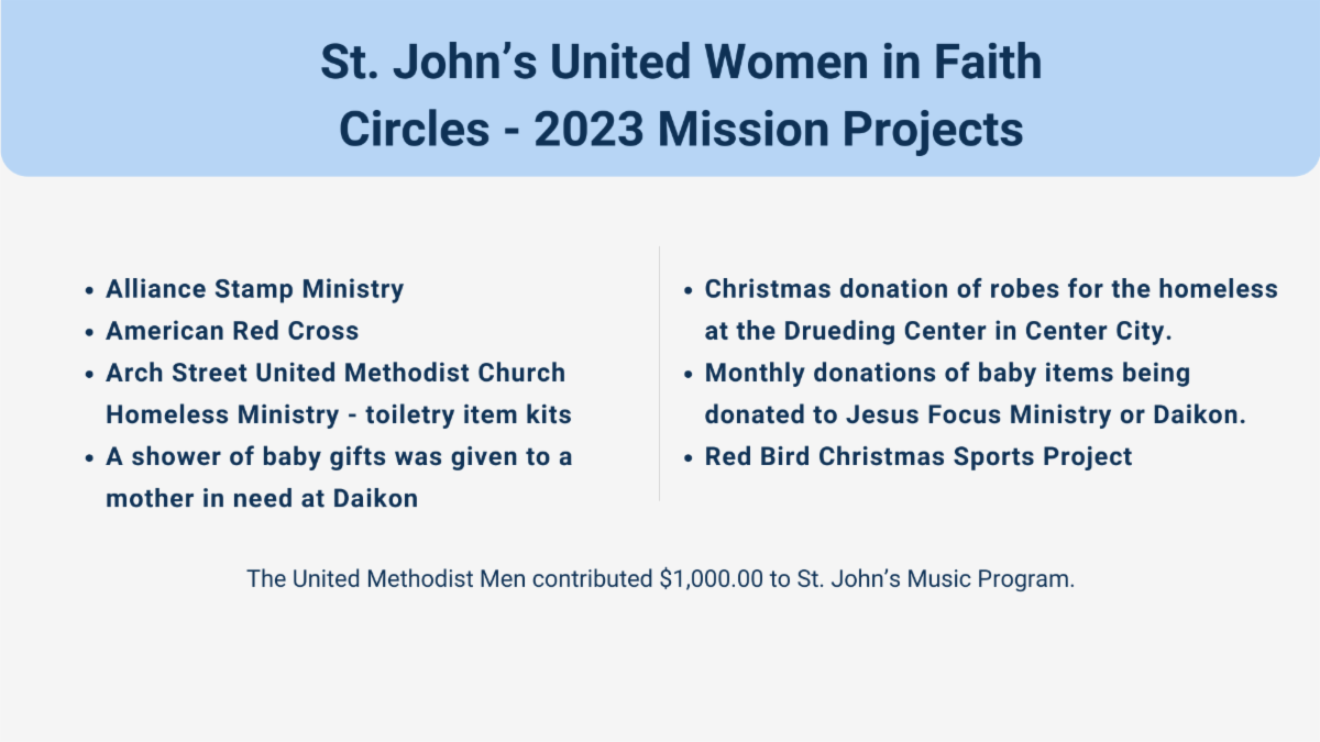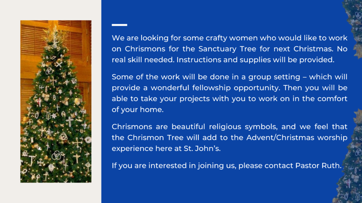 As I read Annette’s letter, something else struck me. Yes, the ending of this ministry is difficult. Still, the concluding thoughts of the staff are thoughts of blessing and thanksgiving. They have been blessed in their tireless efforts to serve those struggling for 30+ years. They are thankful for the opportunity to extend the light and love of Christ to those who needed it most… even when that was difficult. They have been blessed by you – the St. John’s Family (mentioned by name!) – for your steadfast commitment and support of their efforts along the way. The thankfulness and blessing they expressed moved me, reminding me that God never fails to bring forth blessing through faithful efforts to serve Christ. Remember that – every sacrifice made, every gift given, every last food item donated will be transformed into a blessing when it is offered for Christ.