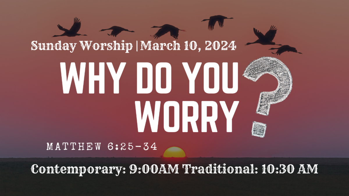 This Sunday in worship we’ll hear Jesus ask each one of us why do you worry? I hope you read Matthew 6:25-34, and then join me as we seek out the better way Jesus points us to. Don’t forget to “Spring Ahead” one hour into Daylight Savings time… and join me at 9am & 10:30am on Sunday!