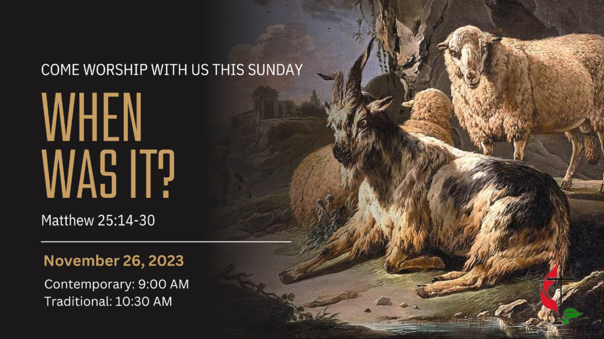 This Sunday in worship we’ll explore Matthew 25:31-46, the third and final parable in Matthew 25. In the “Parable of the Sheep and Goats” we get a picture of how Christ will ultimately evaluate our lives, and we see how both “sheep” and “goats” experience surprise when hearing their evaluation. And, while few people look forward to evaluations, I sense we all long for the justice that Christ’s eternal reign will bring. I hope you’ll join me Sunday morning-