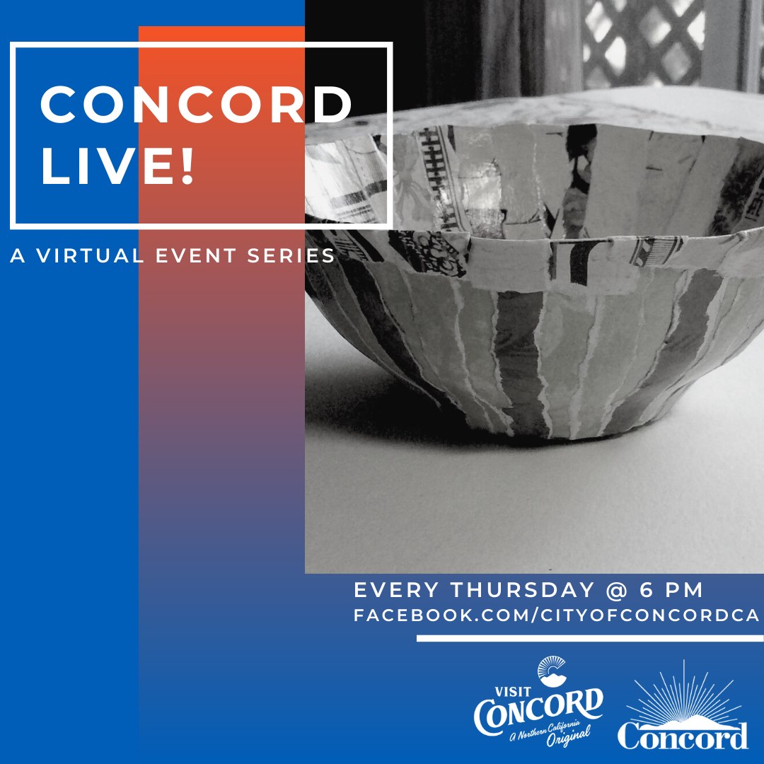 "Concord Live!," in partnership with the Concord Art Association, will be going live on Jan. 28 at 6 p.m. on the City's Facebook page. This week, join local artist Pat Viera for Paper Bowl Art!