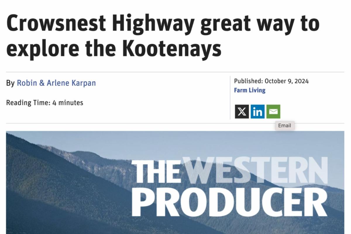 Fernie was included as a 'favourite' stop on a Kootenay Roadtrip in 'Crowsnest Highway great way to explore the Kootenays' by Robin & Arlene Karpan, published in October.