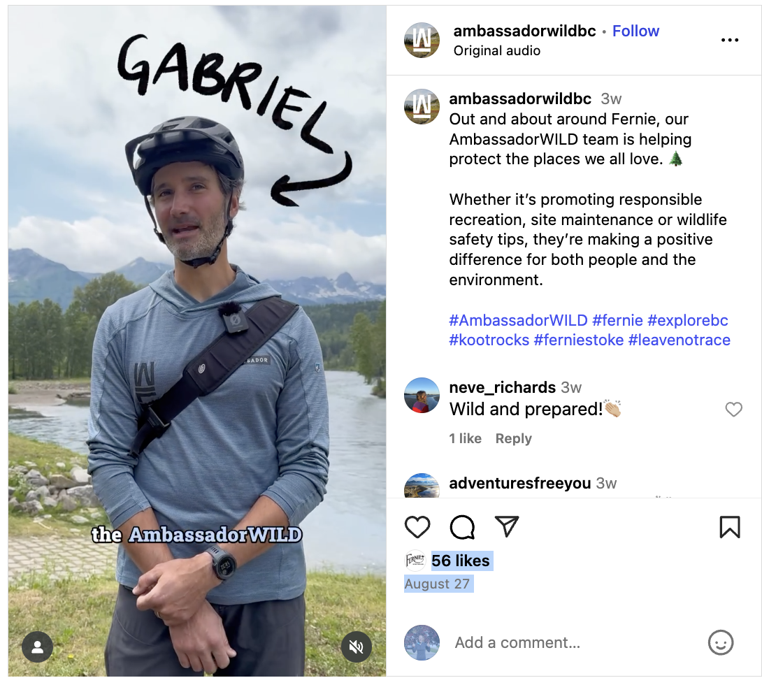 The AmbassadorWild Program is a finalist in the Fernie Chamber of Commerce's Business Excellence Awards in the 'Environmental Sustainability' Category.