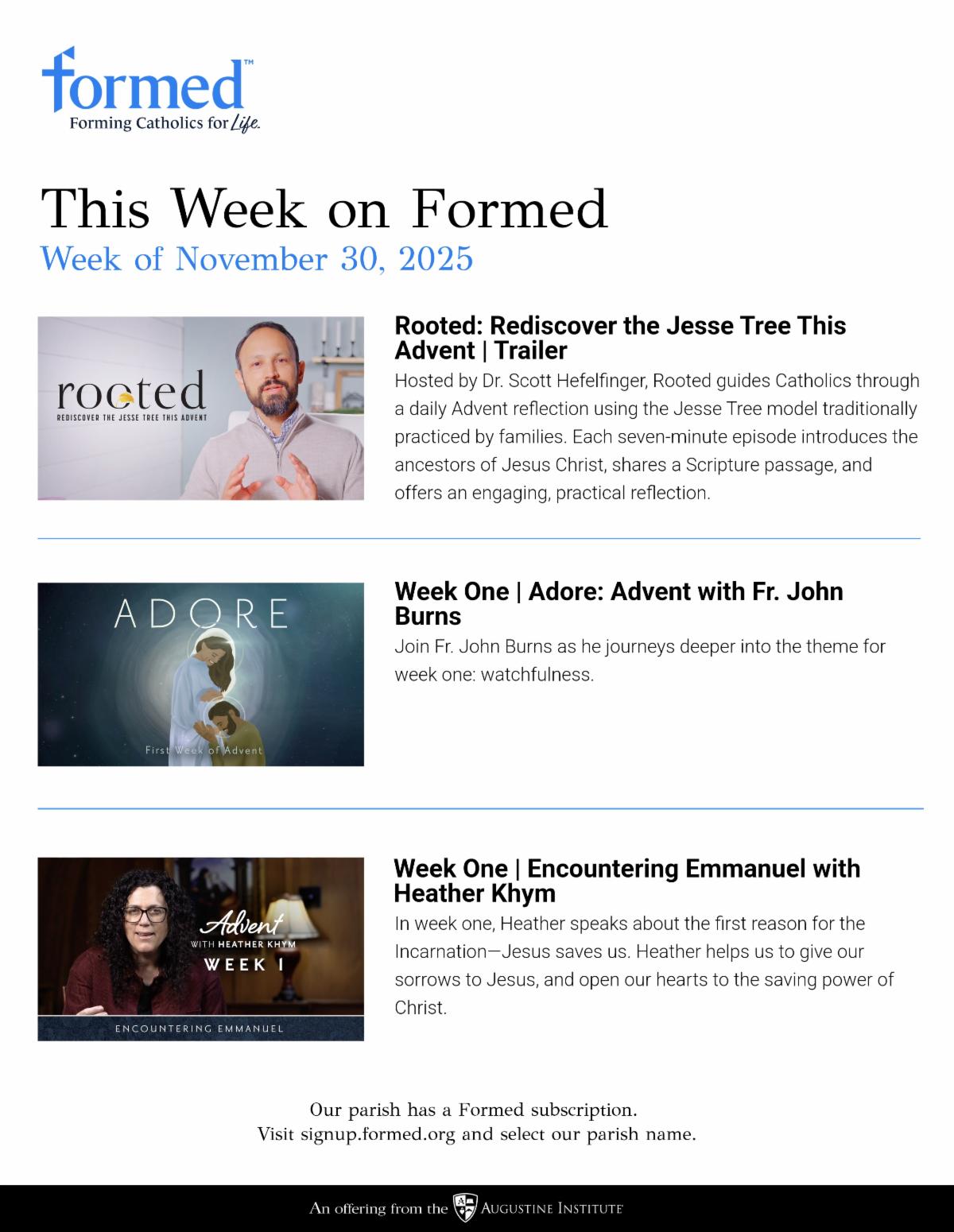 Printed copies are available at the Family Ministry table, along with the new copies of the 2025-26 Children's Missals for use during Mass (as always, please return to basket after use)