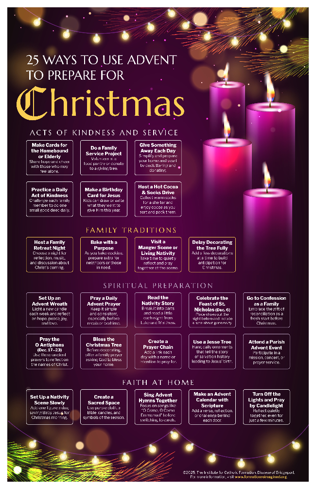 Students, young and old, from our CCD Program and the parish, are invited to sing at the 5:30 P.M. Mass this year. Wear your “Christmas Best” and lift your voices for Jesus at one of our Vigil Masses. It will be a beautiful time!
