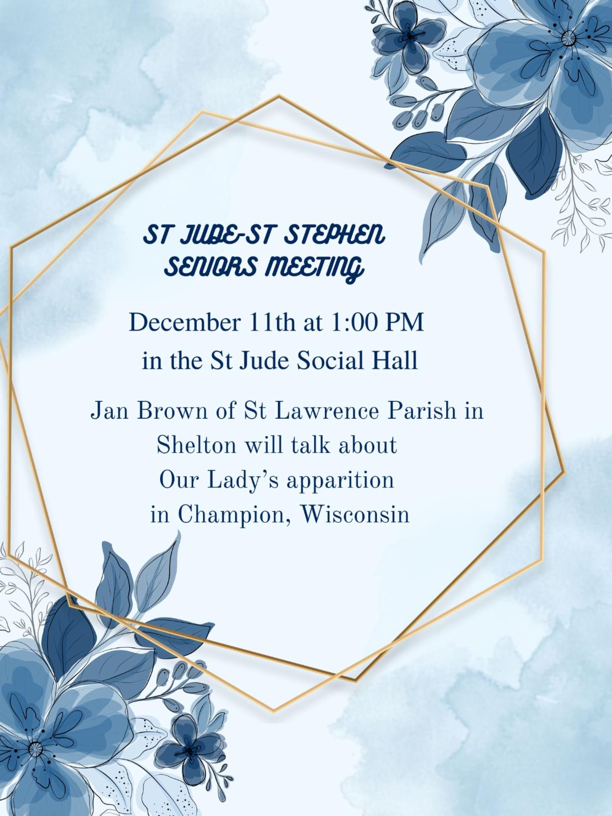 Sunday, December 14 - after 11:30 Mass (meet at 12:30 in vestibule)