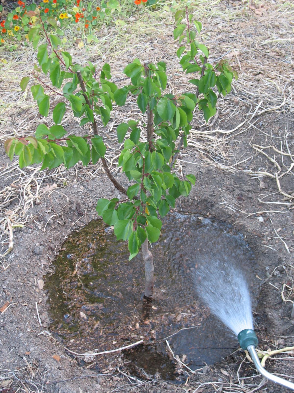 Plant them on a mound or in a raised bed so water drains away from the trunk down into the rootzone for new developing roots.