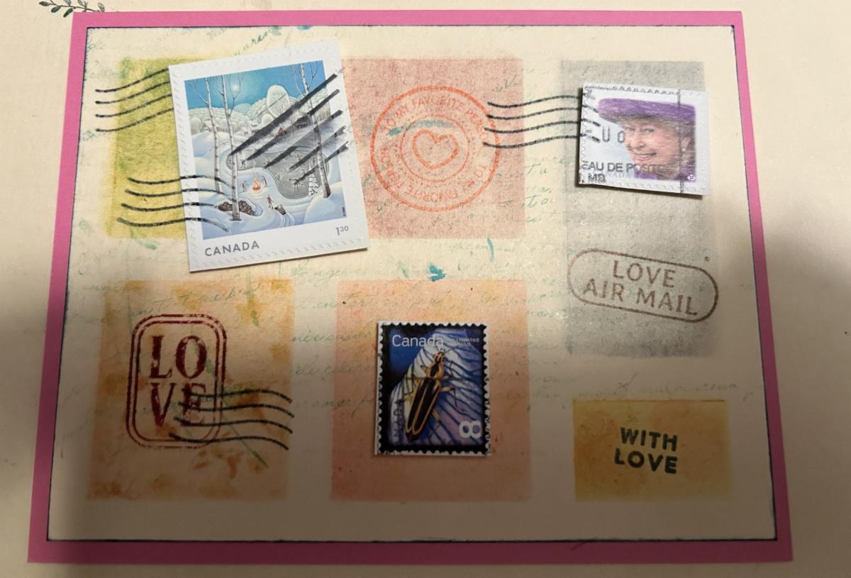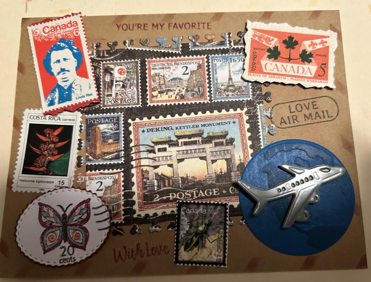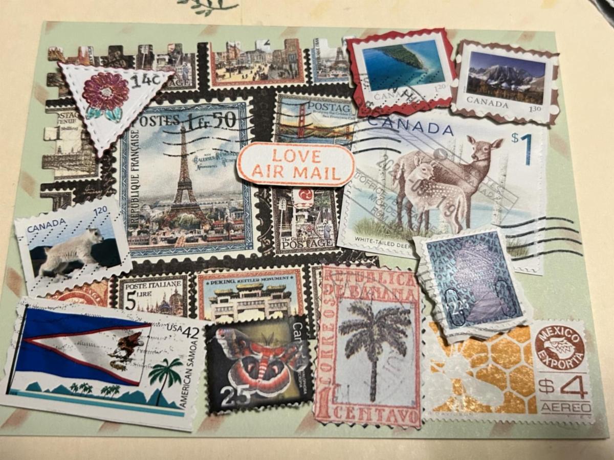 Here are some pictures from our California crafter, Sheila. I love how Sheila added real postage stamps to some of her cards!