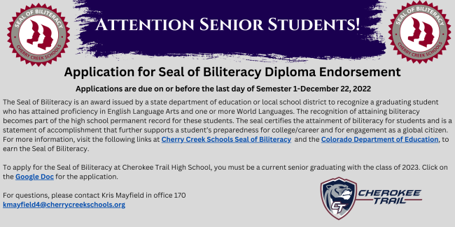 Please click the link below to see the Senior 2023 Important Dates. These are subject to change and you will always find the most up to date version on the CTHS website.